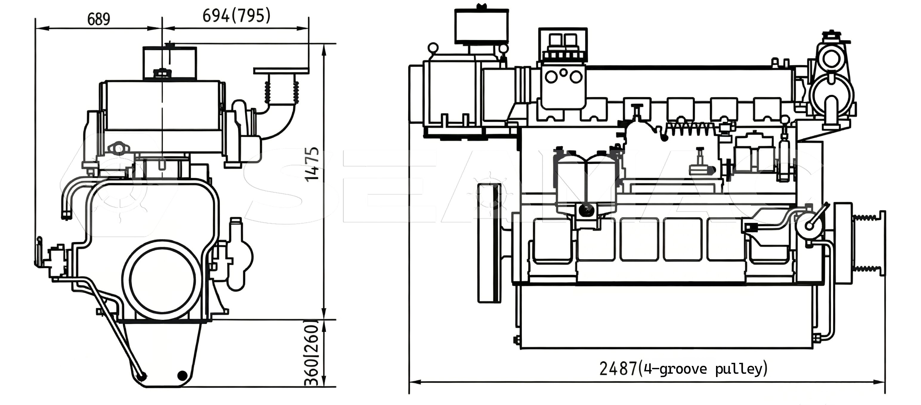 Z6170ZLCZ Series Marine Engine Dimensions